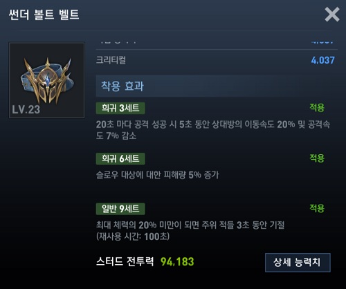 벨트는 공격 시엔 썬더 볼트 벨트를 사용하고, 스킬을 모두 사용하면 앱솔루트 쉴드 벨트로 바꿔씁니다. 망토는 당연히 영웅망토를 애용하고 있습니다.