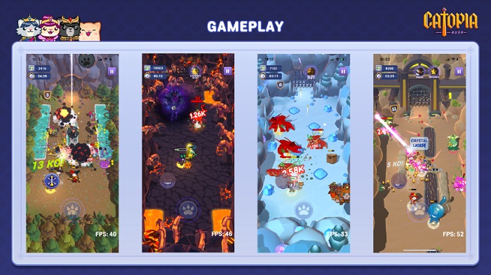 또한 모험 도중 마주친 다양한 펫 고양이들을 모아 나만의 팀을 꾸리고 성장시켜 나가는 요소와 ‘캣토피아’ 왕국을 재건하는 꾸미기 기능, 업적, 미션 등을 추가해 다채로운 재미를 더했다.