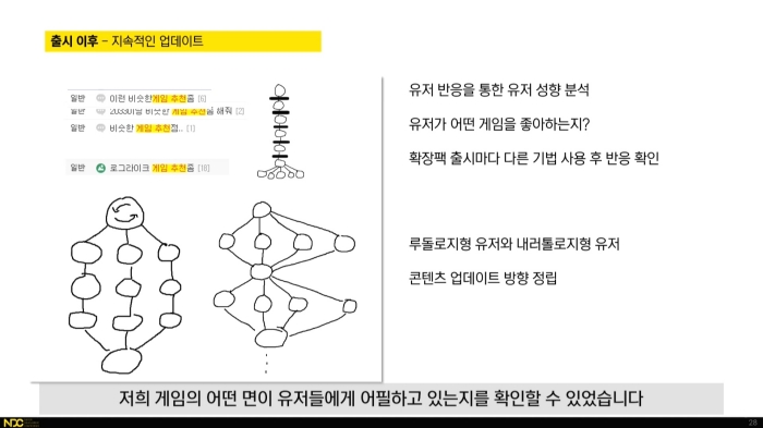 유저 커뮤니티의 의견 중 다른 게임 추천글 또한 많은 도움이 되었다고 말했다. 유저의 눈으로 본 서울 2033의 장점과 특징을 파악하고 더 나아가 비슷한 장르에서 서울 2033이 배울 점까지 확인할 수 있어 콘텐츠 업데이트 방향을 설정하는데 큰 도움을 얻을 수 있었다고 설명 했다.
