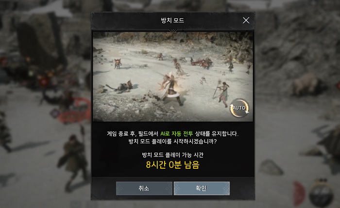 - 하루 8시간 직접 플레이 하지 않아도 AI가 자동으로 사냥한다! 방치모드