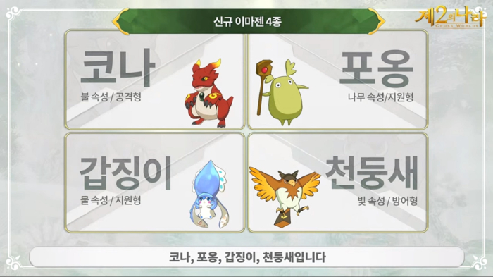7월에는 신규 이마젠 '코나'와 '포옹', '갑징이', '천둥새' 네 마리가 추가된다.