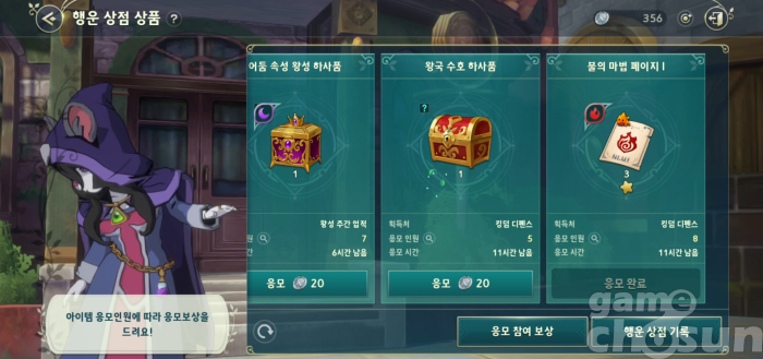 킹덤 보상은 행운 상점 추첨으로 얻을 수 있다 = 게임조선 촬영