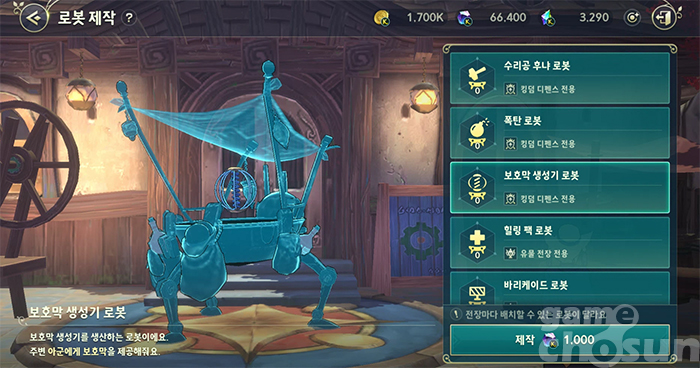 로봇은 일종의 사용 아이템 생산 기지라고 생각하면 된다 = 게임조선 촬영