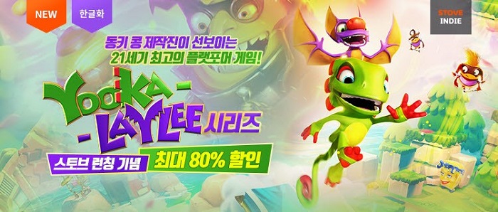 스토브 인디는 이번 유카 레일리 시리즈의 론칭을 기념해 최대 80% 할인을 진행한다. 공식 한글화된 ‘유카-레일리와 불가능의 소굴’도 60% 할인된 가격에 구매가 가능하다.