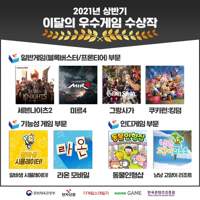 이달의 우수게임 수상작은 게임 기획 우수성, 제작 완성도, 콘텐츠 경쟁력, 사업 역량 등을 기준으로 한 전문가 평가와 총 1만여 표 규모의 게임 사용자 투표를 통해 최종 선정되었다. 이번 선정에는 모바일게임부터 보드게임까지 아우르는 중소게임사들의 게임 개발에 대한 열정을 확인할 수 있었다.