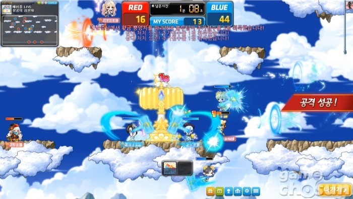매 시 15분, 45분에 플레이할 수 있는 미니게임이다. 입장하면 모든 캐릭터가 이동거리가 고정된 더블 점프와 뿅망치 공격만 할 수 있으며 최대 20명까지 레드팀, 블루팀으로 나뉘어 구름 위에서 상대팀을 더 많이 떨어트리는 것이 목표다.