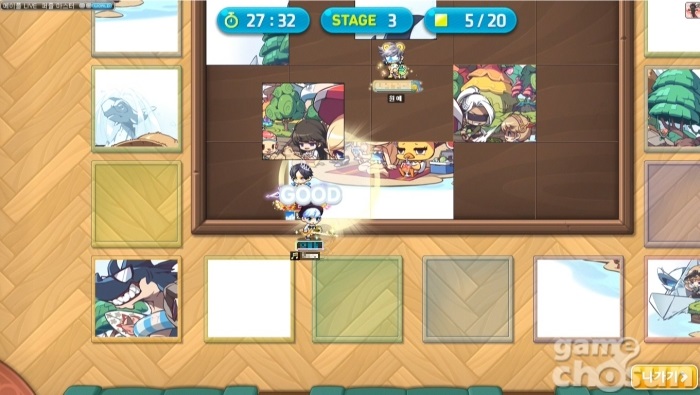 흩어진 퍼즐 조각을 알맞게 배치하는 미니 게임 = 게임조선 촬영