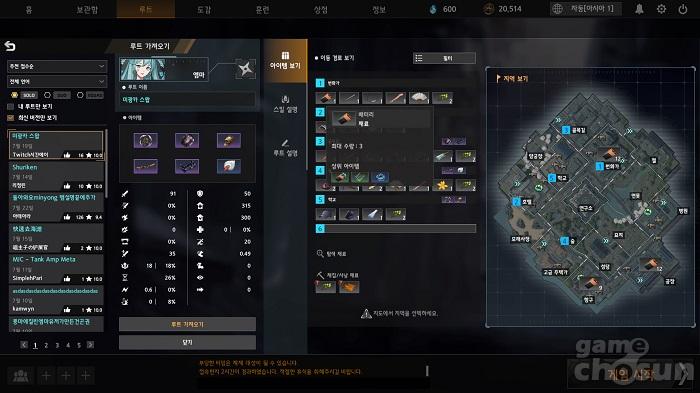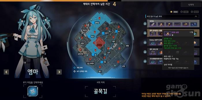 이 부분이 이터널 리턴을 처음 접하는 이들에겐 가장 낯설면서도 어렵게 느껴진다. 이에 게임 내에서는 캐릭터 선택 후 각 캐릭터의 추천 장비 세팅을 제공하며, 각 추천 장비 세팅을 선택하면 구역을 어떤 차례로 이동해야하는지 루트를 제공한다.