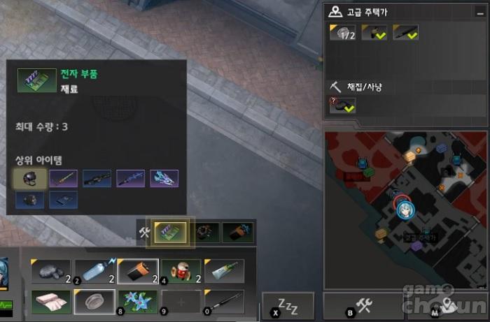 또한 재료를 찾을 수 있는 구역이 정해져 있으므로 총 15개의 구역을 어떤 차례로 이동할 지에 대해서 연구할 필요가 있다. 장비 파밍 루트를 얼마나 효율적으로 짜느냐가 후반부에 전투가 벌어졌을 때 생존률을 높이고 최후의 1인이 되기 위한 가능성을 높인다.