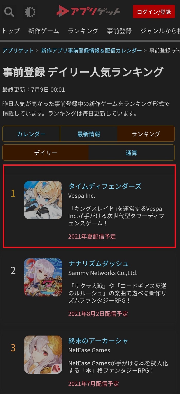 지난 8일 정식 서비스를 앞두고 일본 현지 사전예약에 돌입한 '타임디펜더스'는 오픈 하루 만에 일본의 사전예약 사이트 앱겟(appget)에서 사전예약 랭킹 1위를 차지한 바 있다.