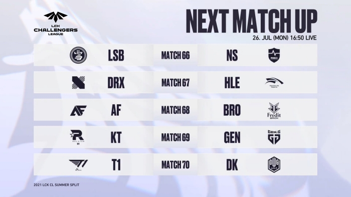 [자료제공 = 케스파] 2021 LCK 챌린저스 리그 서머(이하 LCK CL) 2라운드 8주차가 26일(월) 오후 5시부터 시작된다.