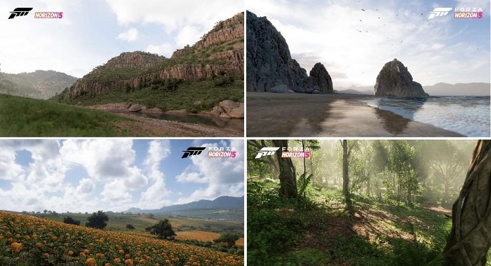 포르자 호라이즌 5에서 구현된 멕시코는 각각의 특색이 모두 다른 11개 자연 경관으로 구성되어 있다. 각 자연 경관은 게이머에게 마치 현장에 있는 듯한 경험을 선사할 수 있도록 방대한 자료조사는 물론, 현장별 특징과 미적 요소를 최대한 정확하게 구현하기 위한 컨셉 이미지 작업과 사진측량(photogrammetry) 기술을 이용해 제작됐다.