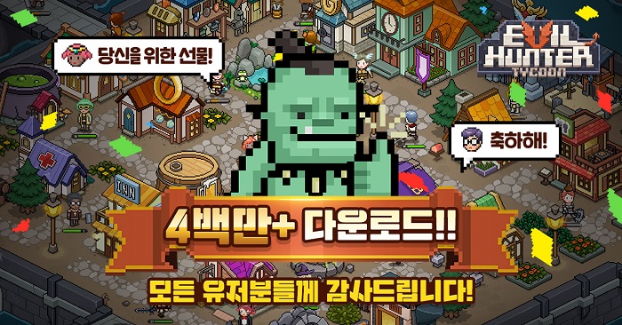 '이블헌터 타이쿤'은 이에 멈추지 않고 끈질긴 집념으로 400만 다운로드 돌파를 통해, 출시된지 약 1년반이라는 시간이 지났음에도 전 세계 유저들로부터 사랑받는 게임으로 자리매김하였다.