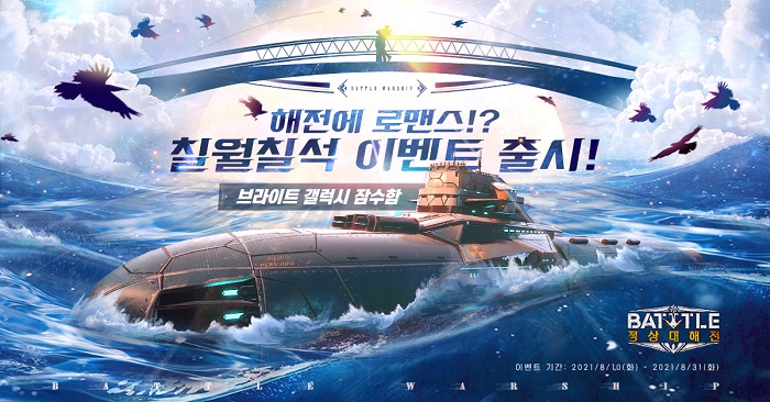 ‘칠월칠석 이벤트’는 이달 10일부터 31일까지 약 22일 동안 진행된다. ‘행운 까치’와 ‘행운 캔디’를 모아 ‘오작교’를 업그레이드하고 ‘브라이트 갤럭시’ 잠수함 등 다양한 아이템 보상을 받을 수 있다. ‘행운까치’와 ‘행운캔디’는 해적 처치, 데일리 활동 상자 등을 통해 획득할 수 있으며, 13일(금) 하루동안 전 서버에 축하카드와 함께 무료로 지급된다.