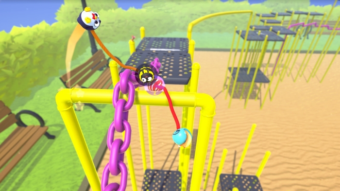 플링 투 더 피니시는 각 2명의 플레이어가 신축성 좋은 로프에 묶여 다채롭고 혼란스러운 장애물 코스를 달리는 게임이다. 의사소통의 능력에 따라 이 로프는, 함께 플레이하는 친구처럼, 게임 플레이에 큰 도움이 될 수도 혹은 가장 큰 장애물이 될 수도 있다. 파트너와 말그대로 한 몸으로 플레이해야 하기 때문에 플링 투 더 피니시는 진정한 협동 게임이다. 로프 활용을 마스터해 장애물에 휘두를 수도 파트너를 난간위로 던져 위기를 모면할 수도 있다. 게임에 익숙해지면 진정한 곡예가 펼쳐진다.