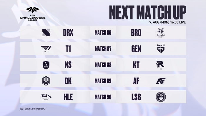 [자료제공 = 케스파] 2021 LCK 챌린저스 리그 서머(이하 LCK CL) 2라운드 마지막 경기가 9일(월) 오후 5시부터 시작된다.