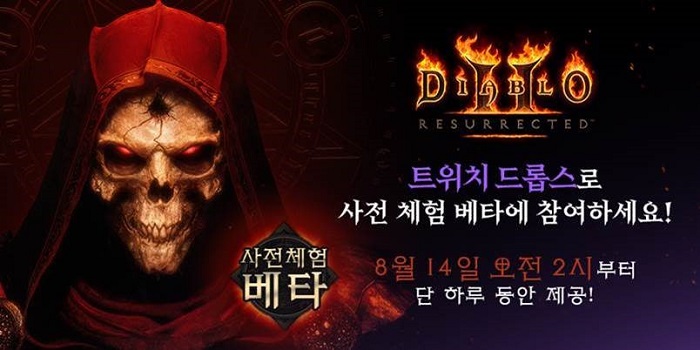 Windows® PC, Xbox Series X|S, Xbox One, PlayStation®5, PlayStation®4에서 플레이 가능한 디아블로 II: 레저렉션 오픈 베타 테스트는 8월 14일 오전 2시부터 8월 18일 오전 2시까지의 오픈 베타 사전 체험, 그리고 그 다음 주 주말인 8월 21일 오전 2시부터 8월 24일 오전 2시까지 누구나 참여할 수 있는 오픈 베타로 나뉘어 진행될 예정이다. 사전 체험에는 예약 구매자 및 이번 트위치 드롭스와 네이버 게임 라운지를 통해 키를 확보한 팬들이 참여할 수 있다.