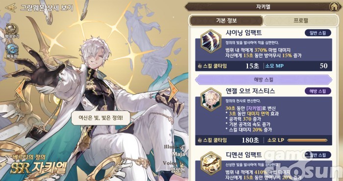 단일 공격 스킬급 딜링 능력을 가진 샤이닝 임팩트와 완전체 공격력 증가 변신 엔젤 오브 저스티스 = 게임조선 촬영