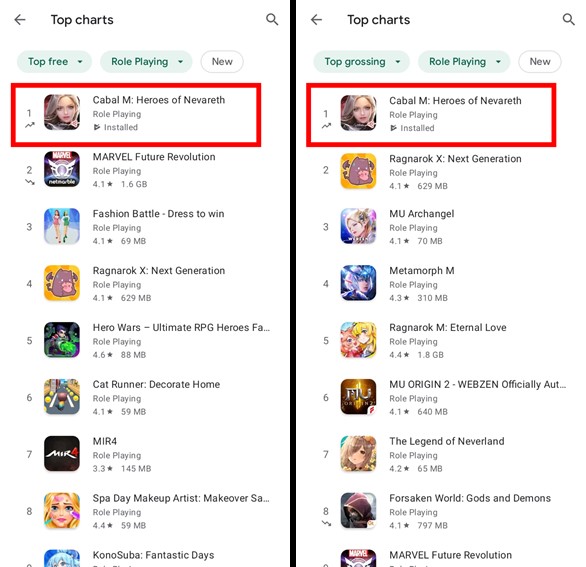 카발 모바일은 작년 11월 태국에서도 런칭 첫날부터 애플 앱스토어 순위 1위를 기록한 이후 꾸준히 5위권을 유지하고, 구글 플레이 스토어에서는 현재까지 롤플레잉 게임 부문 매출 10위권을 웃돌고 있다.