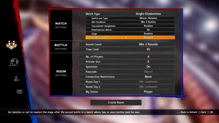 - 룸 매치의 '토너먼트전''리그전'에서 시합을 동시 진행할 수 있다!