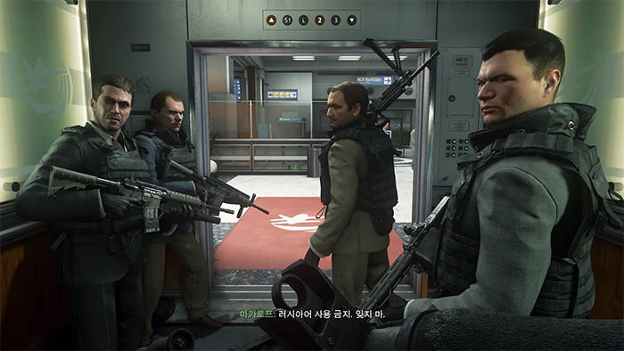 유저들이 만든 자체 번역에선 주로 "러시아어 사용하지 마. 기억해" 정도로 해석하곤 하지만, 러시안이라는 단어를 '러시아인'으로 해석할 경우 "러시아인 남기지 마"라는 의미도 될 수 있습니다. 또한 자신들 밖에 없는 폐쇄된 엘레베이터 안에서 굳이 이 대사를 영어로 말하죠. 대사의 주체인 마카로프의 잔혹성과 교활함을 동시에 엿볼 수 있는 대목입니다.