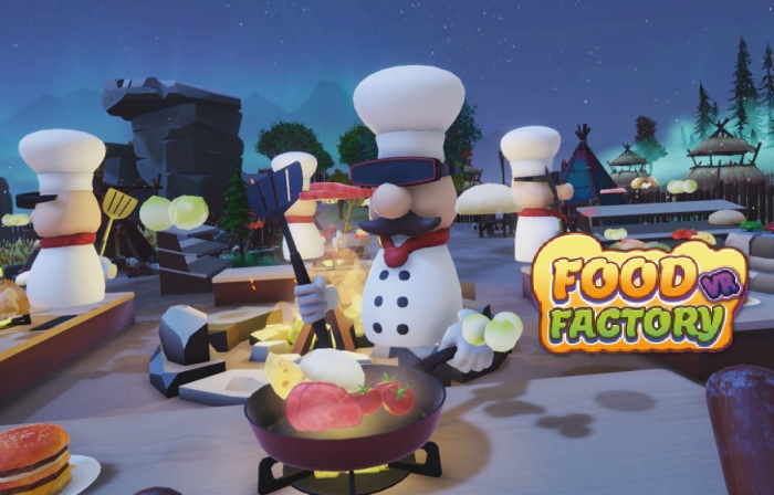 ‘푸드팩토리’는 이용자가 쉐프가 되어 음식을 테마로 한 7개의 미니게임을 즐길 수 있는 캐쥬얼 VR게임이다. 간단하고 직관적인 조작으로 플레이 할 수 있으며 속도감 있는 미니게임 위주로 구성되어 있는 것이 특징이다. 싱글 플레이는 물론 최대 4명까지 멀티 플레이를 지원한다.