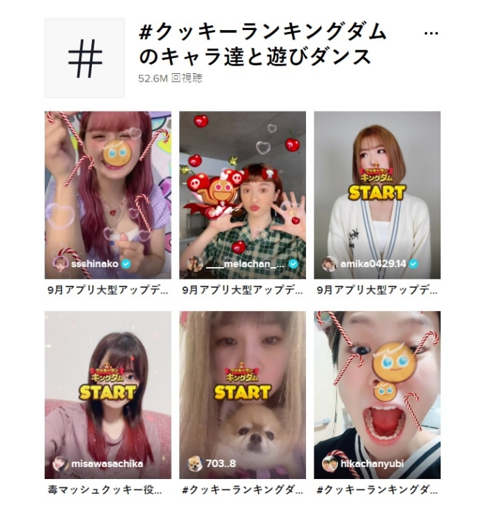 지난 2일 업데이트를 통해 일본어 보이스 콘텐츠를 게임에 최초로 적용하고, 4일 만에 일본 애플 앱스토어 인기 게임 순위 1위에 등극한 쿠키런: 킹덤이 이번에는 틱톡, 유튜브, 미러티브(Mirrative) 등 소셜 채널에서 바이럴 챌린지와 인플루언서 활용 캠페인을 전개한다. 틱톡에서는 쿠키런: 킹덤 필터와 테마송에 맞춰 누구나 쉽게 참여할 수 있는 댄스 챌린지를 열었다. 다양한 인플루언서와 일반인들의 적극적인 참여로 누적 조회수 3천만 회를 기록하며 폭발적인 반응을 일으키고 있다.