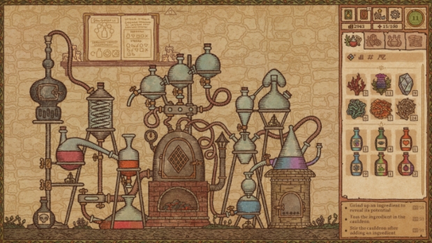 가게 내의 다양한 기구와 재료를 마음껏 활용해 연금술사의 마스터가 되기 위한 여정을 시작할 수 있다. 매일 미리 계획을 세워 기본 재료를 준비하고, 곱게 갈고, 석탄으로 불을 지펴 가마솥을 달구면 모든 준비를 마치자.