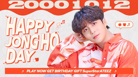 에이티즈 메인보컬 종호의 10월 12일 생일을 기념하여 먼저 ‘Happy Birthday JONG HO’ 이벤트가 진행된다. 주어진 미션을 완료하면 추첨을 통해 리미티드 아크릴 포토카드와 친필 사인이 담긴 폴라로이드를 획득할 수 있다. 이번 아크릴 포토카드는 슈퍼스타 게임에서 가장 파워풀한 아이템인 ‘R카드’를 실물 카드로 구현한 것으로, 종호의 각기 다른 매력을 담은 이미지 5종으로 구성되어 있다. 종호의 훈훈한 비주얼과 화려한 프리즘 배경이 잘 어우러져 많은 팬들의 소장 욕구를 자극할 것으로 보인다.