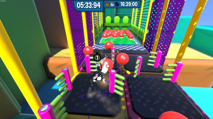 '우당탕탕 경주'에서는 사랑스럽고 통통 튀는 캐릭터들이 신축성 있는 로프에 묶여 험악한 장애물들과 복잡한 코스들로 무장한 다채로운 레벨을 통과하며 경주하는 게임으로 결승선에 도착하기 위해서는 파트너와의 소통과 협력이 필수적이다.