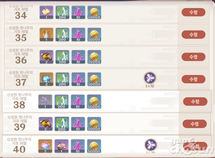 40레벨까지 확장된 신성한 벚나무의 가호 = 게임조선 촬영