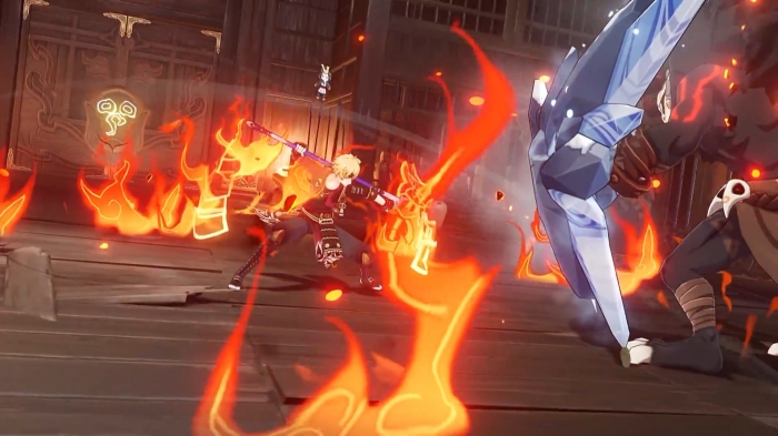 원소 폭발은 일정 시간 동안 불 원소를 흩뿌리는 공격 성능까지 갖추고 있는데 빠르지도 느리지도 않은 타격 간격을 가지고 있어 다른 파티원의 원소 반응을 적절하게 지원해 줄 수 있는 장점까지 가지고 있다.