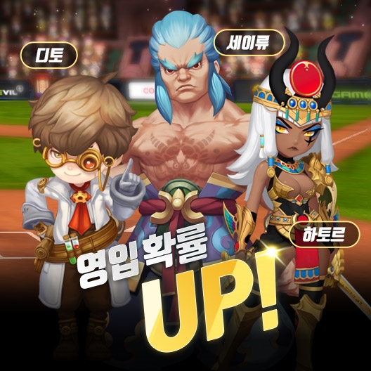 이번 업데이트는 풍성한 이벤트와 레전드 트레이너의 새로운 코스튬이 눈길을 끈다. 지능 속성의 중계투수 트레이너로서 강력한 투수 육성에 활용되고 있는 ‘디토’의 신규 코스튬을 선보였다. 꼬마 병정 콘셉트인 이번 코스튬을 장착하면 개성 넘치는 외형 뿐만 아니라 육성 능력치도 향상시킬 수 있다. 신규 코스튬을 선보인 디토를 비롯해 ‘세이류’, ‘하토르’ 등 인기 트레이너들의 영입 확률 업 이벤트는 이번 달 26일까지 진행된다.