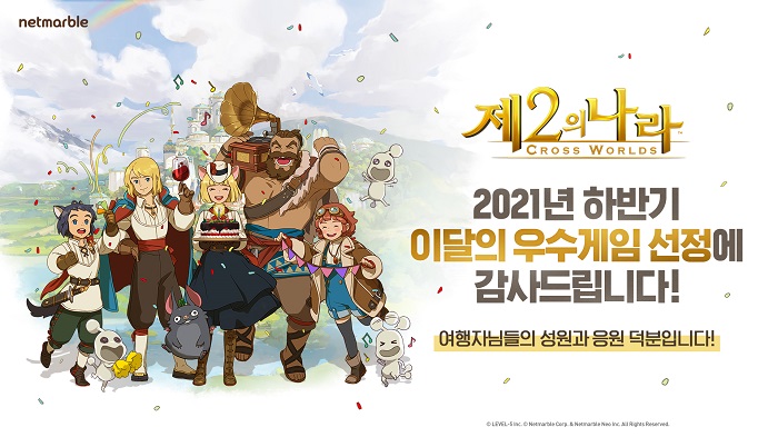 [자료제공 = 넷마블] 넷마블(대표 권영식, 이승원)은 감성 모험 RPG '제2의 나라: Cross Worlds'(이하 제2의 나라, 개발사 넷마블네오)가 '2021 하반기 이달의 우수게임' 일반 게임 부문에 선정됐다고 20일 밝혔다.