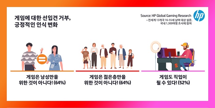또한 응답자 중 72%는 자녀와 함께 게임을 즐겼다고 답했다. 이를 통해 게임에 대한 선입견을 거부하고 긍정적인 인식 변화로 이어지고 있다는 것을 확인 가능하다. HP코리아는 이러한 부분을 파악하고 공략함에 따라 한국 게이밍 시장에서 영향력을 확대해나갈 예정이다.
