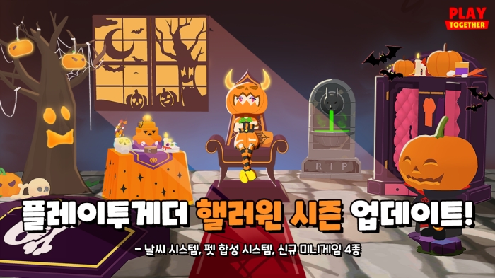 이외에도 ‘플레이투게더’는 핼러윈 시즌 업데이트를 기념한 이벤트도 선보인다. 해당 이벤트는 10월 21일부터 오는 11월 7일까지 진행되며, 낚시 콘텐츠를 즐기는 동안 핼러윈 시즌 스페셜 코스튬을 얻을 수 있는 특별한 상자가 등장할 예정이다.
