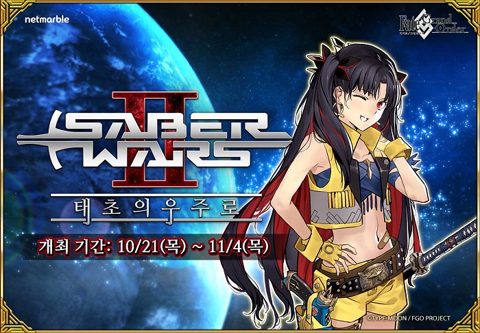 [자료제공 = 넷마블] 넷마블(대표 권영식, 이승원)은 모바일 RPG <페이트/그랜드 오더>에 '세이버워즈2~태초의 우주로~' 이벤트를 11월 4일까지 진행한다고 21일 밝혔다.