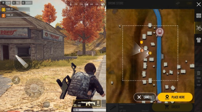 총기 커스터마이징과 드론 스토어도 배틀그라운드: 뉴스테이트만의 특징 중 하나다. 배틀그라운드: 뉴스테이트는 총기를 커스터마이즈해 총기의 성능과 매커니즘에 변화를 줄 수 있는데, 모든 메인 웨폰에 커스터마이즈가 제공돼 총기 운용에 선택의 폭을 넓혀준다. 커스터마이징은 매달 꾸준히 추가 업데이트돼, 총기 메타를 지속적으로 리프레쉬할 예정이다.