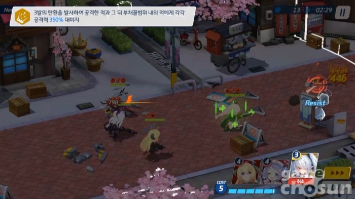 EX 스킬 1레벨부터 350%를 세 발 연속 범위기로 꼽아넣는 위용을 보여준다 = 게임조선 촬영
