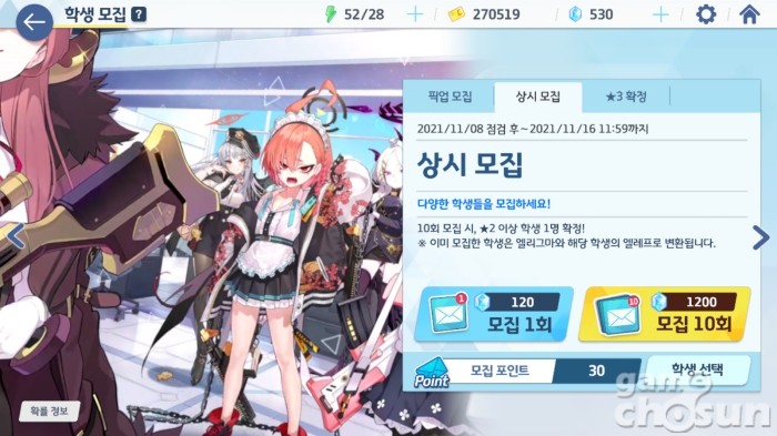 블루 아카이브의 뽑기 화면 = 게임조선 촬영