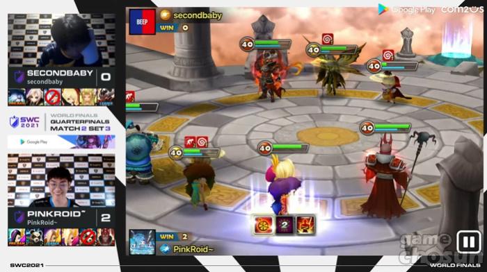 SECONDBABY 선수와 PINKROID 선수가 8강전 2매치를 진행했다. 두 선수의 1세트에서는 PINKROID 선수가 노련하게 SECONDBABY 선수의 핵심 몬스터 화백을 잡아내면서 유리하게 경기를 이끌어나갔으면 변수를 통제하면서 승리했다. 2세트는 SECONDBABY가 데몬을 유니콘으로 빠르게 잡으면서 경기를 유리하게 이끌어가는 듯 했으나, 한 차례의 판단 미스로 두 번째 경기도 내줬다. 이어진 3세트에서도 PINKROID 선수가 압도적인 경기력을 보여줬다. 블리치를 필두로 물웅묘의 활약까지 더해지면서 SECONDBABY 선수를 꺾었다. 이로써 3세트를 모두 승리하면서 4강 무대에 올랐다.