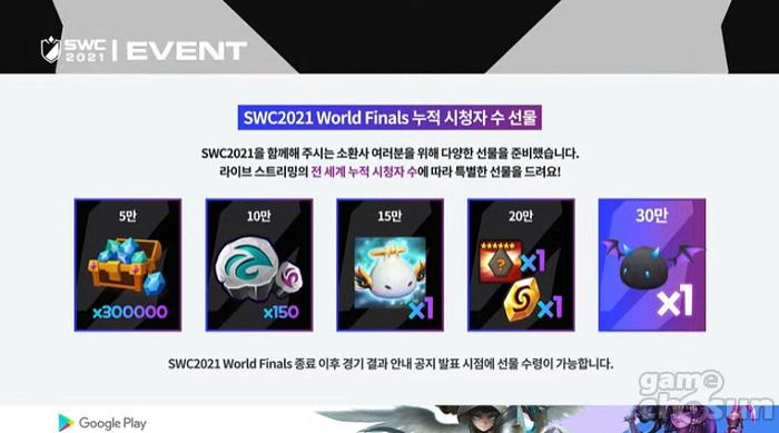시청자를 위한 다채로운 이벤트도 마련됐다. 월드 파이널의 생중계 전세계 누적 시청자 수에 따라서 다채로운 서머너즈 워: 천공의 아레나 인게임 보상이 주어지는데, 누적 시청자 30만 명을 돌파할 경우에 '데빌몬'을 지급하는 등 푸짐한 혜택을 제공했다. 또한 구글플레이 게임 계정으로 유튜브 계정을 서머너즈 워: 천공의 아레나에 연결해 10분 이상 경기를 시청하면 SWC 2021 특별의상을 지급하는 이벤트도 진행했다.
