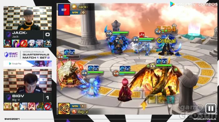 이어진 3세트에서는 PINKROID 선수가 물웅묘용사로 승기를 잡는 듯 했으나, BIGV 선수는 불화백을 잘 활용하면서 차근차근 경기를 이끌어나갔다. 결국 족자 가두기 잘 먹혀들면서 BIGV 선수가 승리를 따냈으며 스코어를 앞서나갔다. 4세트는 다시 PINKROID 선수가 스코어를 동점으로 만들었다. BIGV 선수는 불화백을 활용하면서 빠르게 빛유니콘을 잡아내려했으나 실패하고, PINKROID 선수가 역속성의 불리함을 뚫고 풍유니콘으로 불화백을 잡아내면서 승기를 잡았다. 결국 마지막 5세트에서 결승전에 진출할 선수가 결정되게 됐다.