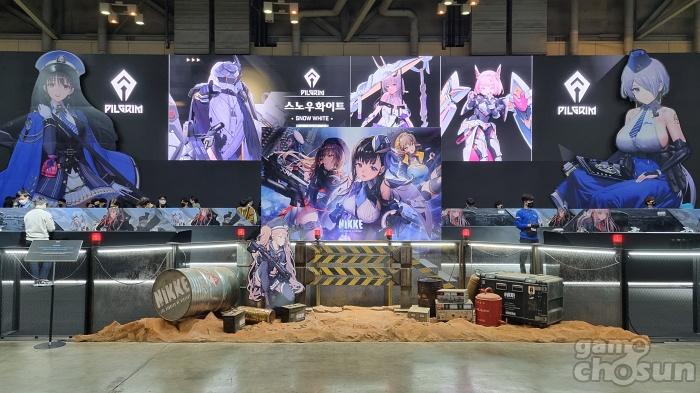 시프트업은 이번 시연을 위해 총 70대의 모바일 기기를 준비했으며 전시장 왼쪽 전체를 차지하는 대형 부스에서 지스타를 방문한 사람을 맞이하고 있다. 대형 디스플레이에서 17일 유튜브를 통해 공개한 메인 트레일러 영상이 재생되고 있으며 누구나 플레이 가능한 시연 버전을 통해 니케를 직접 조종할 수 있는 기회를 제공하고 있다.