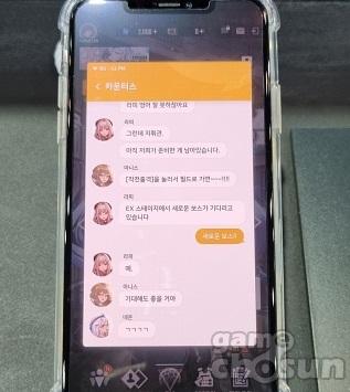 챕터 1을 플레이하고 나면 메인 화면으로 이동하고 게임 내의 다양한 캐릭터와 대화해 볼 수 있는 메신저를 사용할 수 있게 된다. 여기서 볼 수 있는 '카운터스'라는 이름의 단체 채팅방은 지스타 시연 버전을 위해 특별히 구성된 대화로 그간 여러 방면에서 얼굴을 드러내며 니케를 알려왔던 캐릭터들이 모여 이야기하는 모습을 감상할 수 있다.