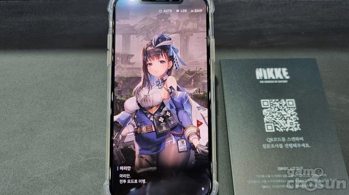 부스에 입장하면 간격을 두고 거치되어 있는 모바일 기기에 니케 : 승리의 여신의 시연 버전이 구동 중이다. 빈자리에서 모바일 기기를 조작해 게임을 시작하면 된다. 시연 버전은 불시착한 뒤 인류를 대신해 싸우는 여성형 안드로이드 '니케'인 마리안과 함께 수색하던 중 아니스, 라피를 만나게 되고 같이 싸우는 챕터 1을 플레이할 수 있다.