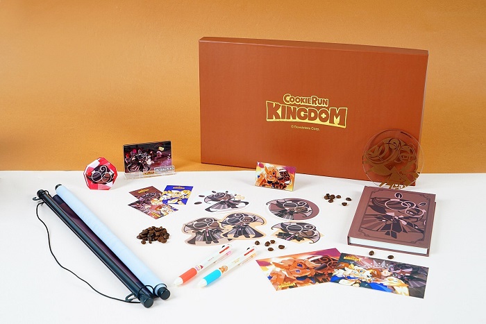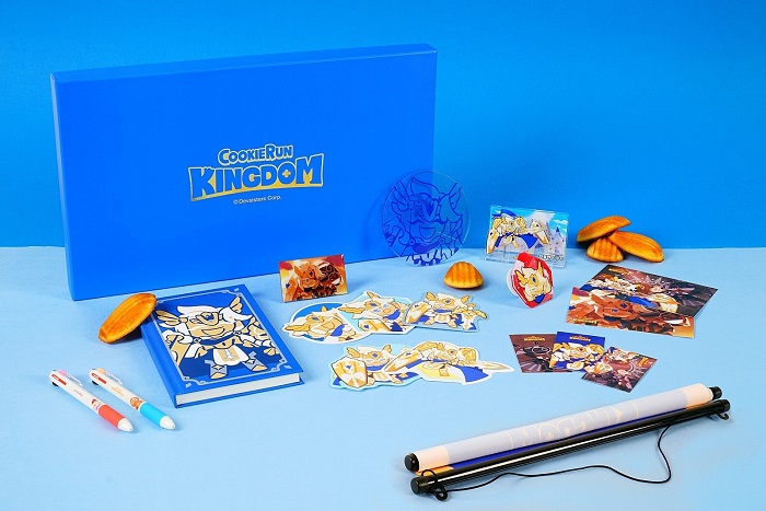 두 가지 굿즈 세트는 각각 마들렌맛 쿠키와 에스프레소맛 쿠키를 모티브로 한 한정 패키지다. 각 세트는 2022년 다이어리, 엽서 2종, 마그넷, 스티커 5종, 아크릴 스탠드, 아크릴 코스터, 브로마이드, 그립톡, 볼펜 2종, 크리스탈 500개 쿠폰 등 다양한 상품으로 구성됐다.