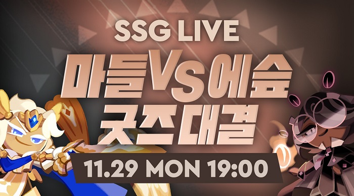 [자료제공=데브시스터즈] 데브시스터즈(공동대표 이지훈, 김종흔)의 자사 모바일 RPG 쿠키런: 킹덤이 SSG닷컴의 라이브 커머스 쓱라이브에서 한정 굿즈 세트를 판매하는 생중계 이벤트 ‘마들렌맛 쿠키 vs 에스프레소맛 쿠키, 불꽃 튀는 굿즈 대결’을 펼친다.