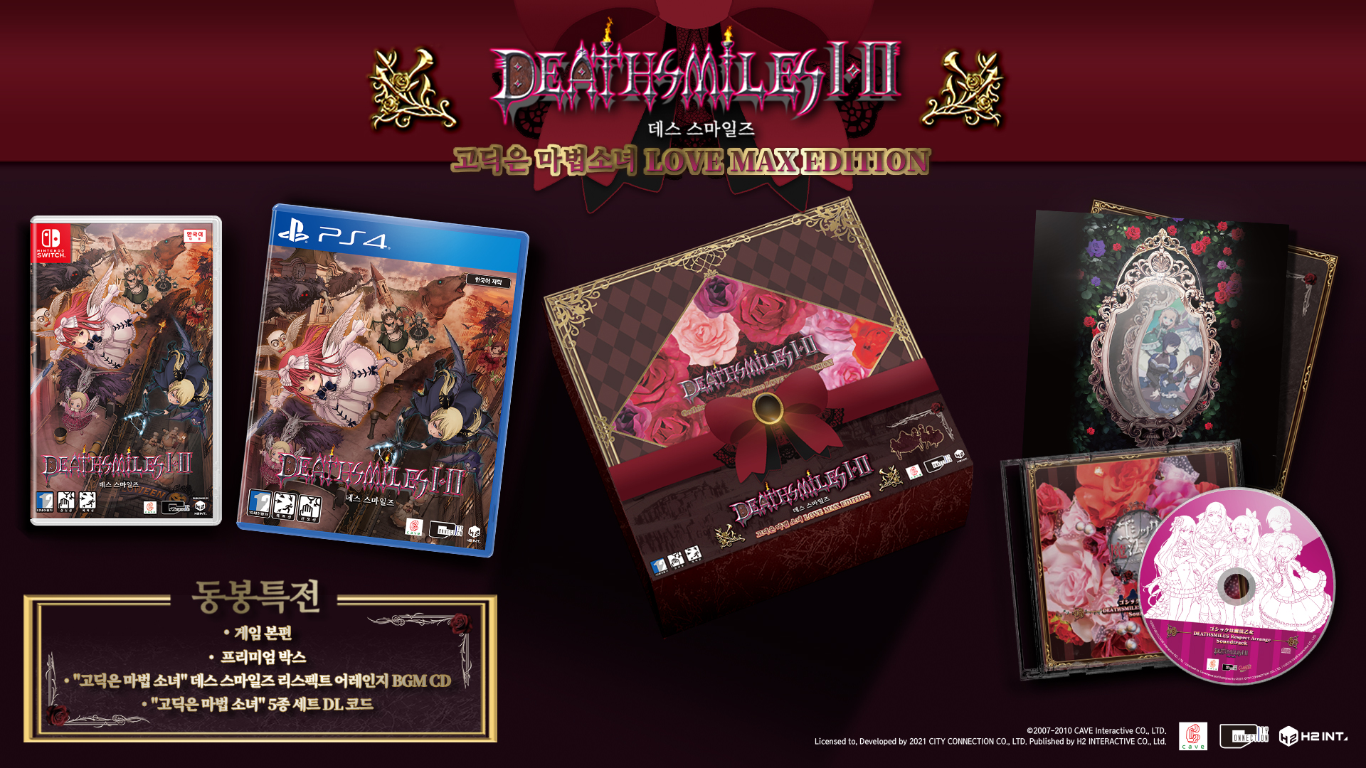 또한 일반 패키지 이외에도 ‘데스 스마일즈’와 세계관을 공유하는 슈팅 RPG ‘고딕은 마법소녀’와의 콜라보레이션으로 구성된 ‘데스 스마일즈 I・II: 고딕은 마법소녀 LOVE MAX EDITION’도 동시에 출시될 예정이다.
