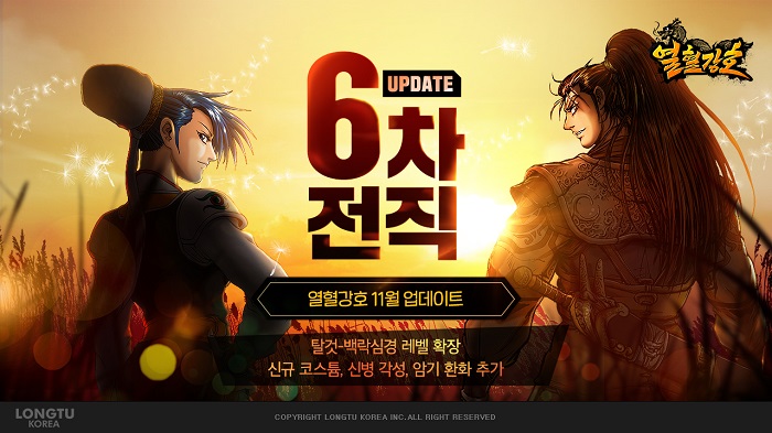 [자료제공 = 룽투코리아] 룽투코리아는 자사에서 서비스 중인 모바일 MMORPG(다중접속역할수행게임) ‘열혈강호’가 신규 업데이트를 실시했다고 7일 밝혔다.